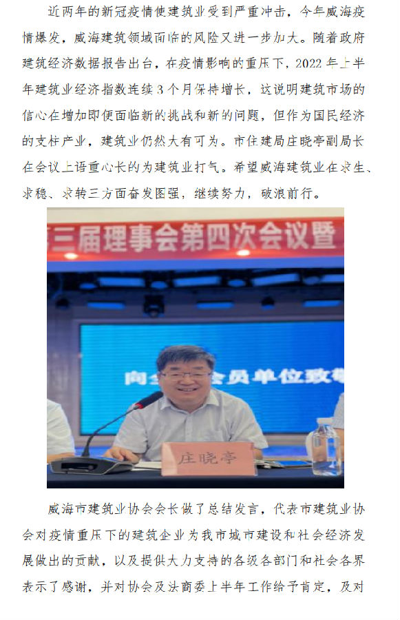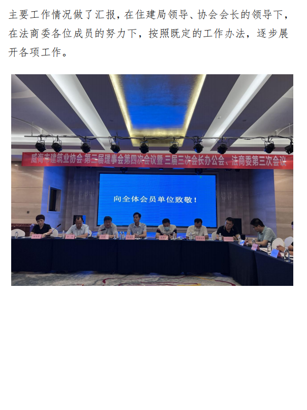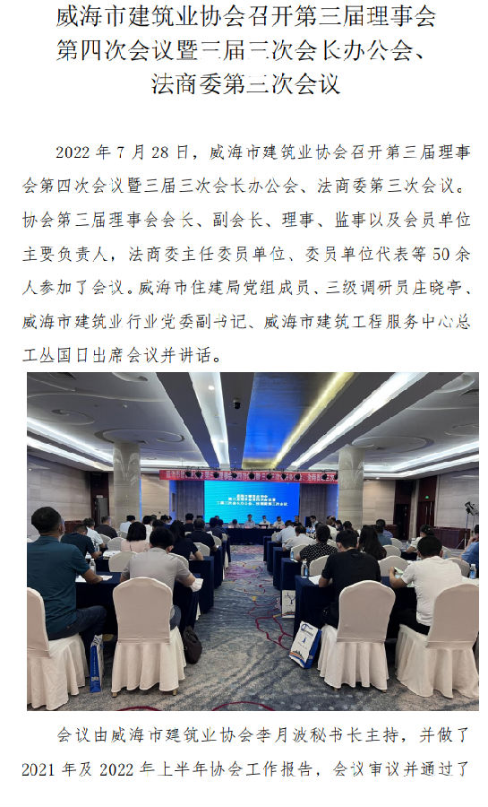 威海市建筑業(yè)協(xié)會(huì)召開第三屆理事會(huì) 第四次會(huì)議暨三屆三次會(huì)長(zhǎng)辦公會(huì)、 法商委第三次會(huì)議