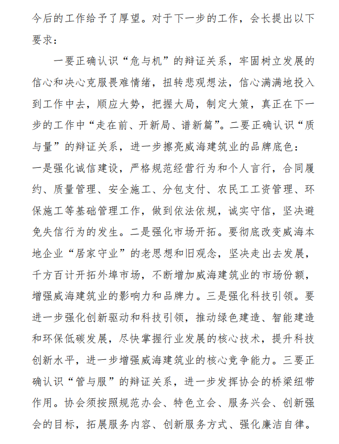 • 當(dāng)前位置:首頁(yè) >焦點(diǎn)新聞>威海市建筑業(yè)協(xié)會(huì)召開第三屆理事會(huì) 第四次會(huì)議暨三屆三次會(huì)長(zhǎng)辦公會(huì)、 法商委第三次會(huì)議