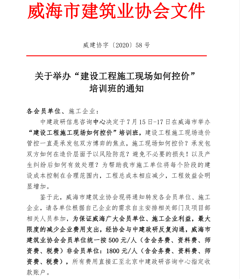 關(guān)于舉辦“建設(shè)工程施工現(xiàn)場(chǎng)如何控價(jià)”培訓(xùn)班的通知