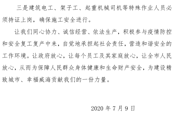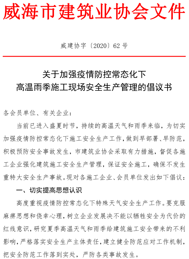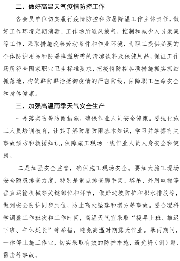 >關于加強疫情防控常態(tài)化下 高溫雨季施工現(xiàn)場安全生產(chǎn)管理的倡議書