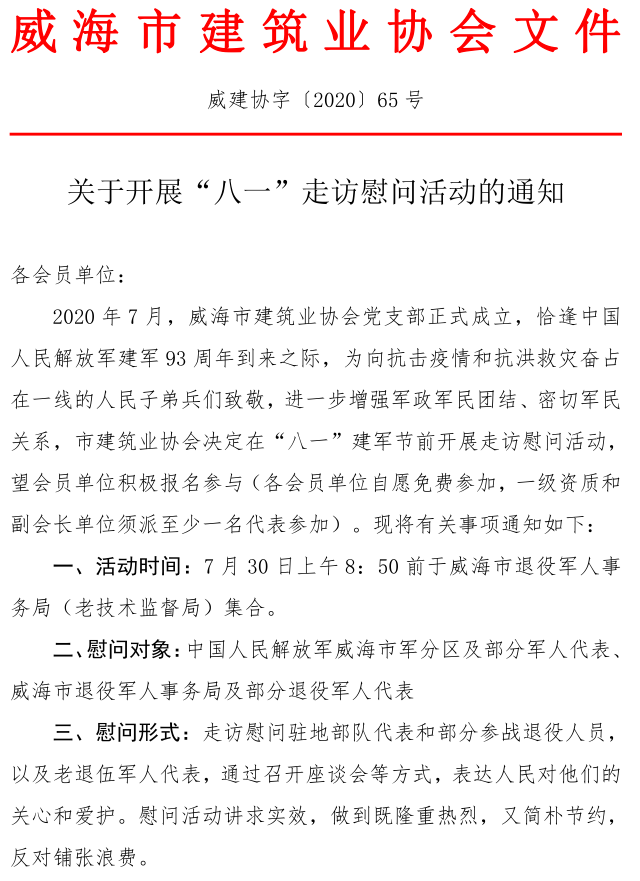 >關(guān)于開展“八一”走訪慰問活動的通知