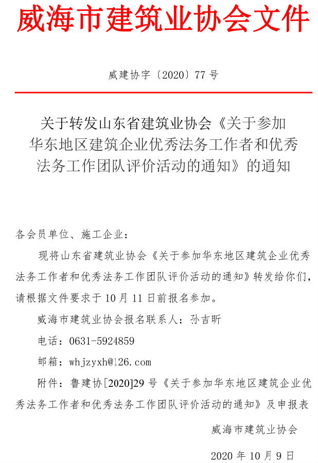 • 當(dāng)前位置:首頁 >文件公告> 關(guān)于轉(zhuǎn)發(fā)山東省建筑業(yè)協(xié)會(huì)《關(guān)于參加 華東地區(qū)建筑企業(yè)優(yōu)秀法務(wù)工作者和優(yōu)秀 法務(wù)工作團(tuán)隊(duì)評(píng)價(jià)活動(dòng)的通知》的通知