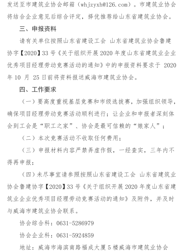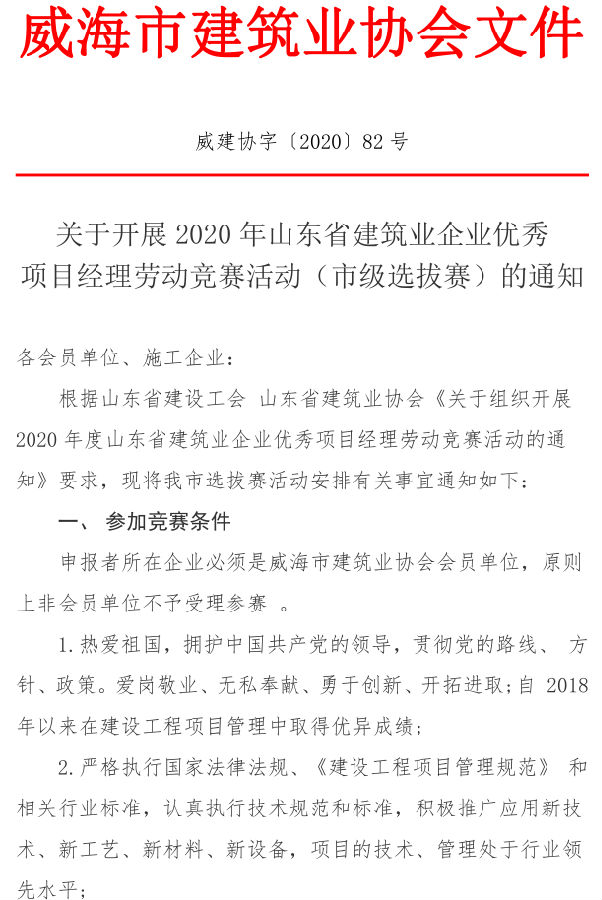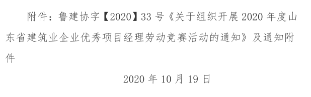 關于開展2020年山東省建筑業(yè)企業(yè)優(yōu)秀 項目經(jīng)理勞動競賽活動(市級選拔賽)的通知