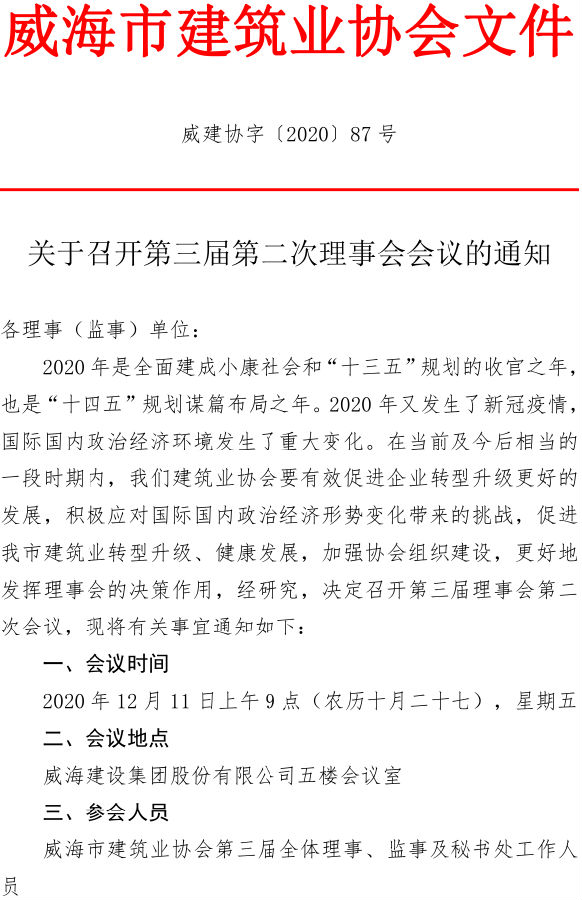 關(guān)于召開第三屆第二次理事會(huì)會(huì)議的通知