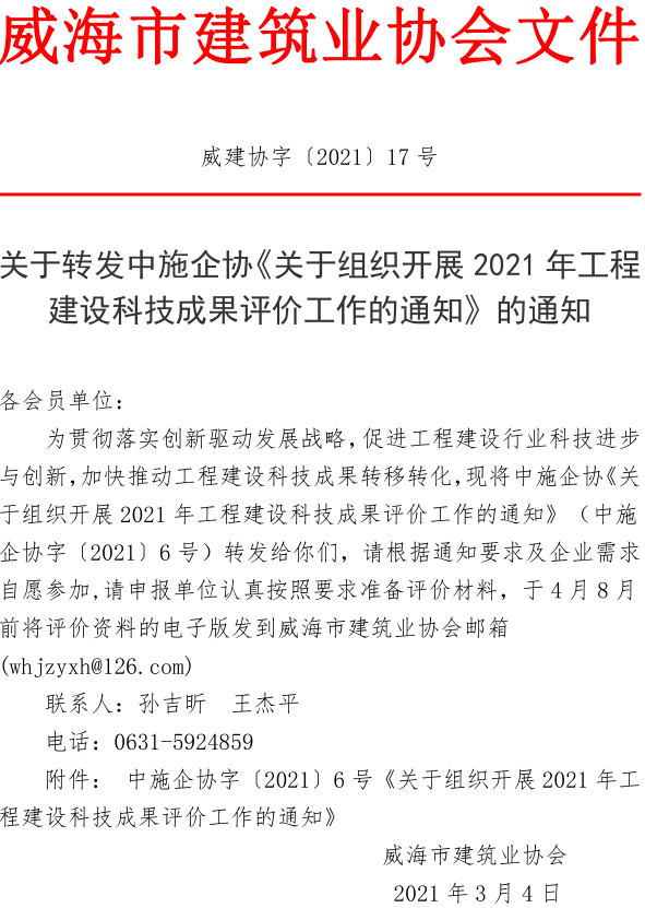 關(guān)于轉(zhuǎn)發(fā)中施企協(xié)《關(guān)于組織開展2021年工程建設(shè)科技成果評價工作的通知》的通知