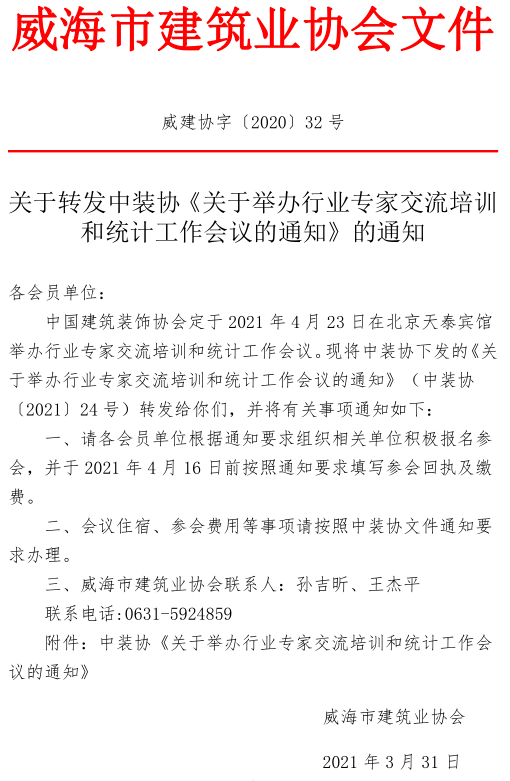 關(guān)于轉(zhuǎn)發(fā)中裝協(xié)《關(guān)于舉辦行業(yè)專家交流培訓(xùn)和統(tǒng)計工作會議的通知》的通知