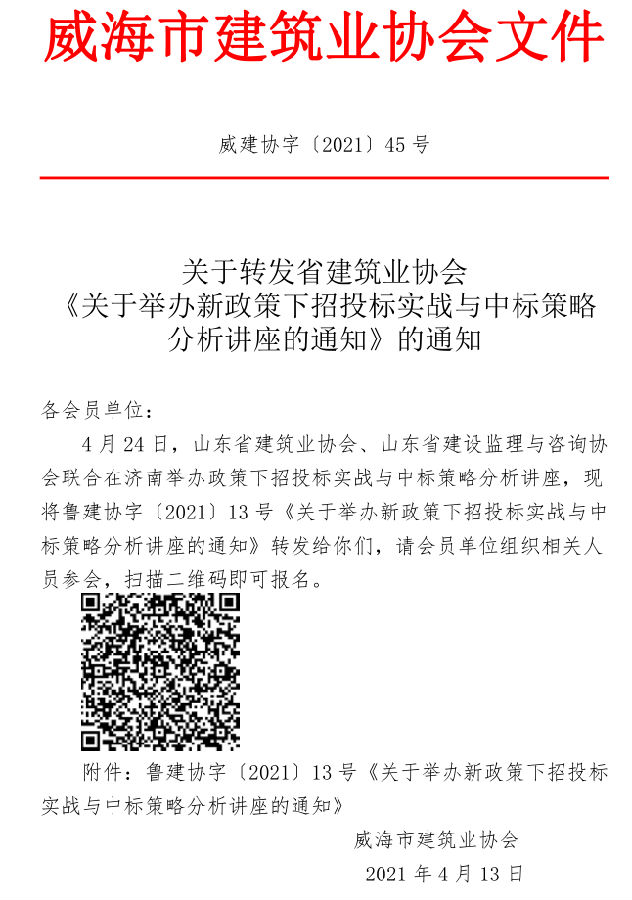 關(guān)于轉(zhuǎn)發(fā)省建筑業(yè)協(xié)會(huì) 《關(guān)于舉辦新政策下招投標(biāo)實(shí)戰(zhàn)與中標(biāo)策略分析講座的通知》的通知