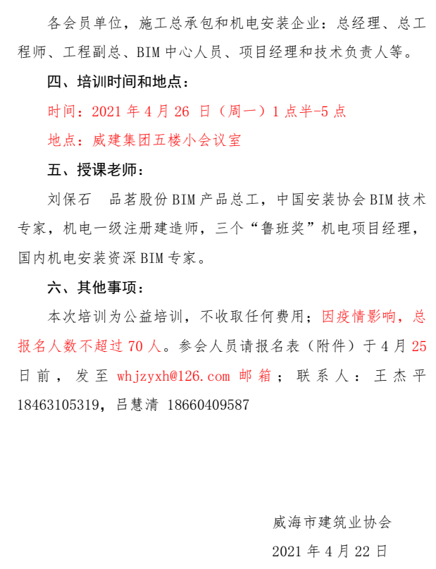 威建協(xié)字53號(hào)關(guān)于舉辦威海市BIM技術(shù)應(yīng)用培訓(xùn)的通知.zip