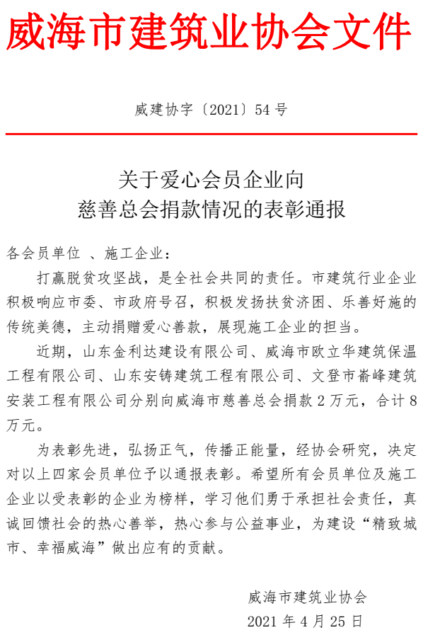 >關(guān)于愛心會(huì)員企業(yè)向 慈善總會(huì)捐款情況的表彰通報(bào)