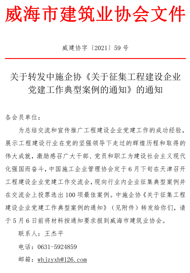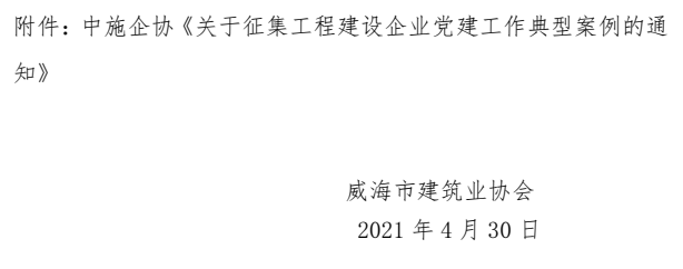 關(guān)于轉(zhuǎn)發(fā)中施企協(xié)《關(guān)于征集工程建設(shè)企業(yè) 黨建工作典型案例的通知》的通知