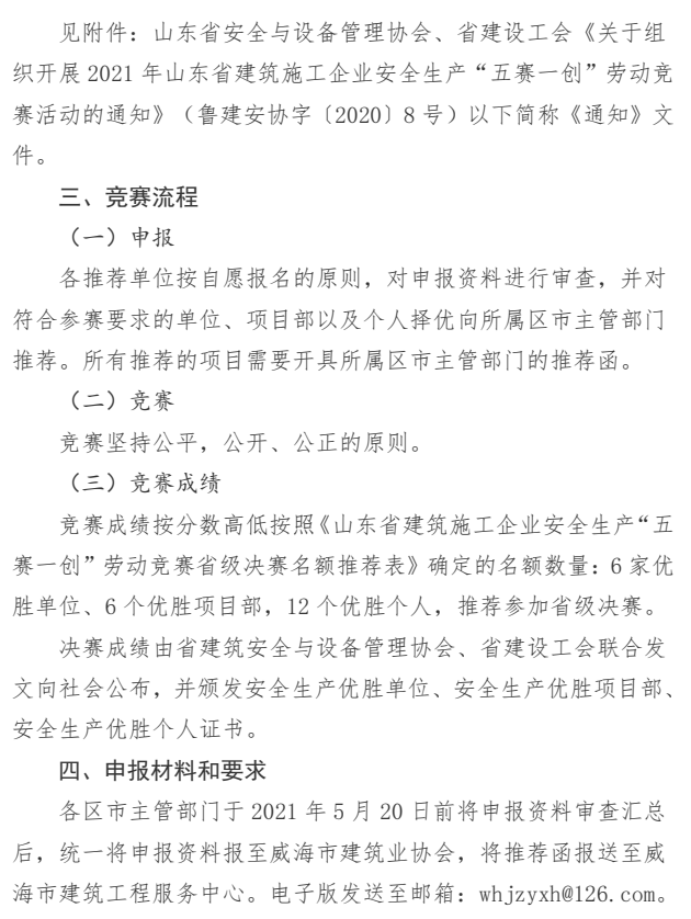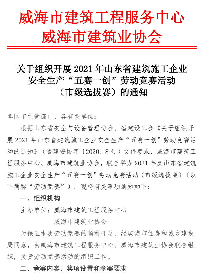 關(guān)于組織開展2021年山東省建筑施工企業(yè) 安全生產(chǎn)“五賽一創(chuàng)”勞動(dòng)競(jìng)賽活動(dòng) (市級(jí)選拔賽)的通知