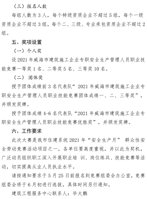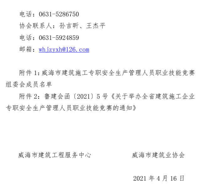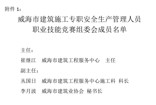 >關(guān)于組織開(kāi)展威海市施工企業(yè)專職安全生產(chǎn)管理人員職業(yè)技能競(jìng)賽(市級(jí)選拔賽)的通知