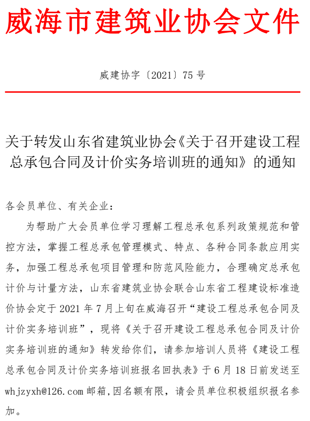 關(guān)于轉(zhuǎn)發(fā)山東省建筑業(yè)協(xié)會(huì)《關(guān)于召開建設(shè)工程總承包合同及計(jì)價(jià)實(shí)務(wù)培訓(xùn)班的通知》的通知