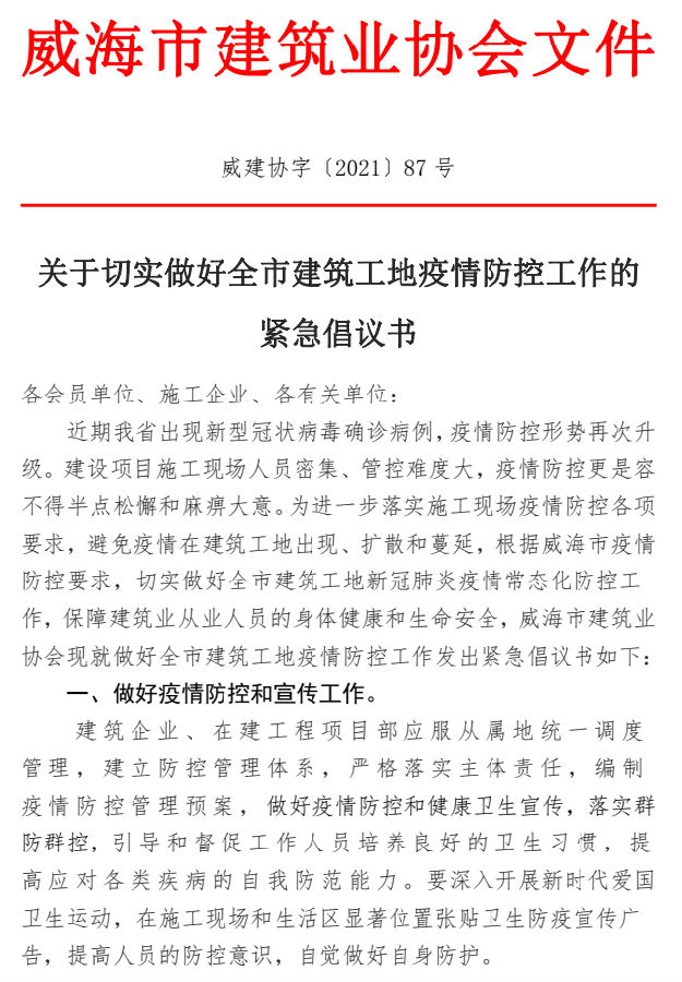 >關(guān)于切實做好全市建筑工地疫情防控工作的 緊急倡議書