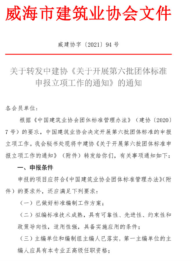 關(guān)于轉(zhuǎn)發(fā)中建協(xié)《關(guān)于開展第六批團體標(biāo)準(zhǔn) 申報立項工作的通知》的通知 ?