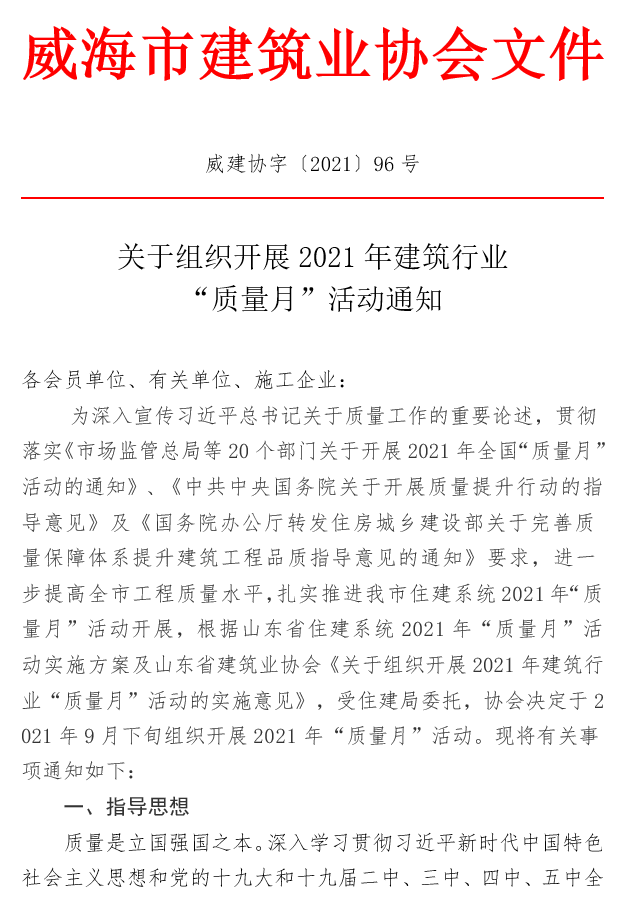 >關(guān)于組織開(kāi)展2021年建筑行業(yè) “質(zhì)量月”活動(dòng)通知