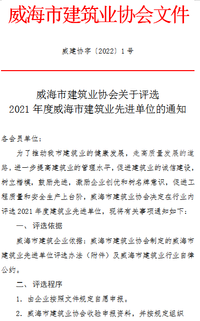 >關(guān)于評(píng)選2021年度建筑業(yè)先進(jìn)單位的通知