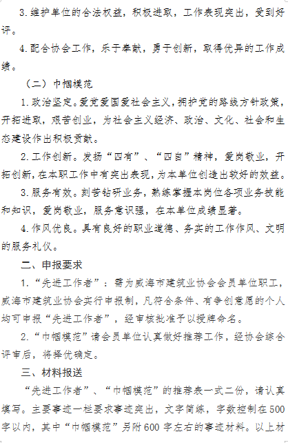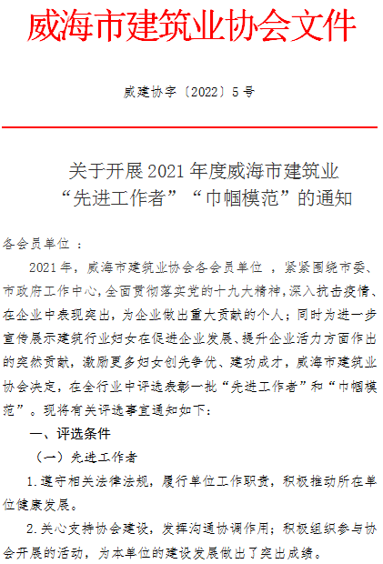 關于開展2021年度威海市建筑業(yè)“先進工作者”“巾幗模范”的通知