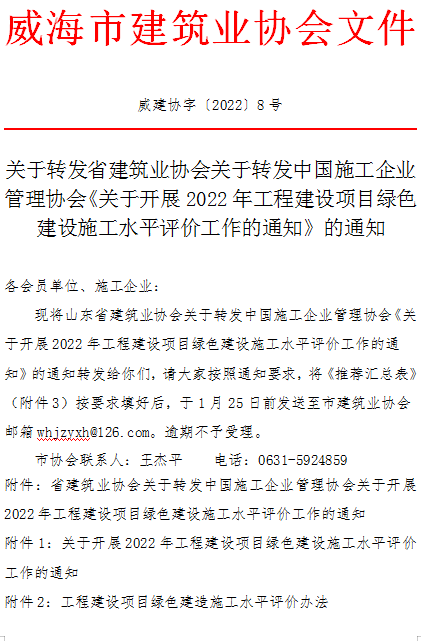 • 當(dāng)前位置:首頁(yè) >文件公告>關(guān)于轉(zhuǎn)發(fā)省建筑業(yè)協(xié)會(huì)關(guān)于轉(zhuǎn)發(fā)中國(guó)施工企業(yè)管理協(xié)會(huì)《關(guān)于開(kāi)展2022年工程建設(shè)項(xiàng)目綠色建設(shè)施工水平評(píng)價(jià)工作的通知》的通知