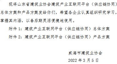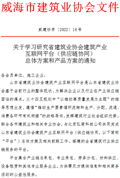 關(guān)于學(xué)習(xí)研究省建筑業(yè)協(xié)會(huì)建筑產(chǎn)業(yè)互聯(lián)網(wǎng)平臺(tái)(供應(yīng)鏈協(xié)同)總體方案和產(chǎn)品方案的通知