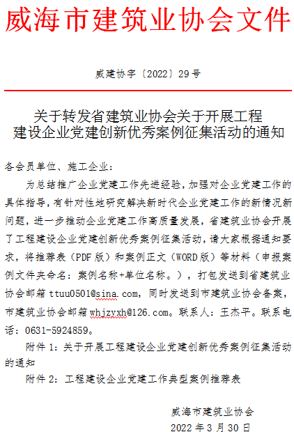 關(guān)于轉(zhuǎn)發(fā)省建筑業(yè)協(xié)會關(guān)于開展工程建設(shè)企業(yè)黨建創(chuàng)新優(yōu)秀案例征集活動的通知
