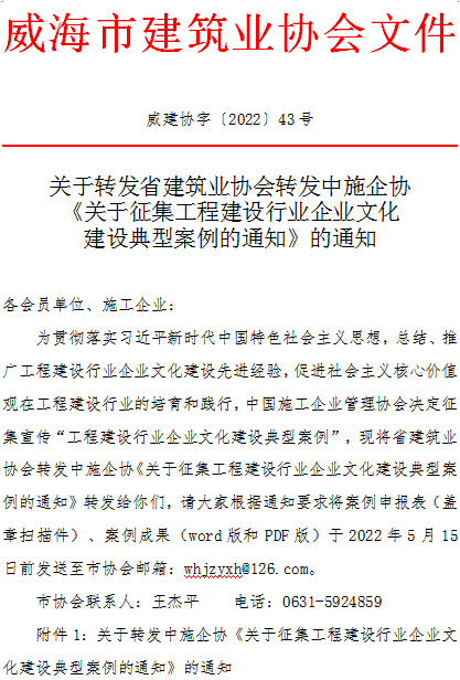 附件1:關于轉發(fā)中施企協(xié)《關于征集工程建設行業(yè)企業(yè)文化建設典型案例的通知》的通知.pdf
