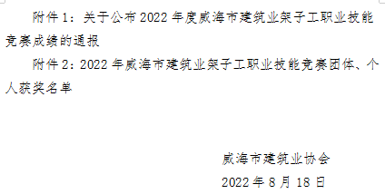 附件1:關于公布2022年度威海市建筑業(yè)架子工職業(yè)技能競賽成績的通報.pdf