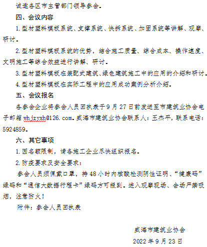 >威海市建筑業(yè)協(xié)會(huì)關(guān)于舉辦型材塑料模板體系觀摩、研討會(huì)的通知