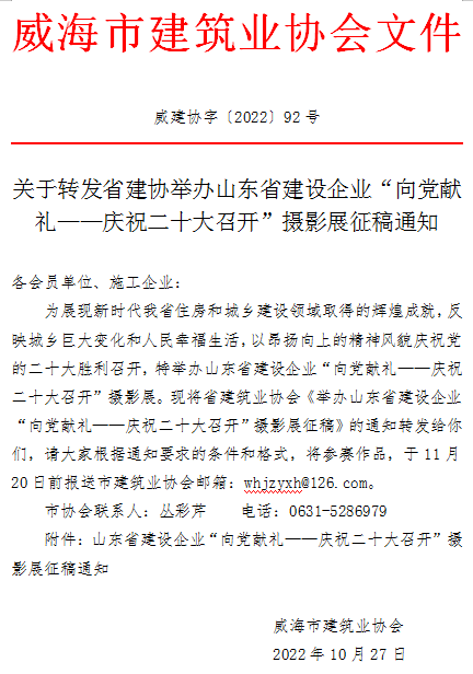附件:山東省建設企業(yè)“向黨獻禮——慶祝二十大召開”攝影展征稿通知.pdf