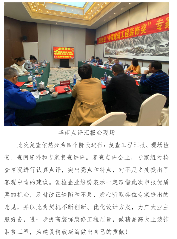 中國(guó)建筑工程裝飾獎(jiǎng)專(zhuān)家組來(lái)我市復(fù)查申報(bào)工程