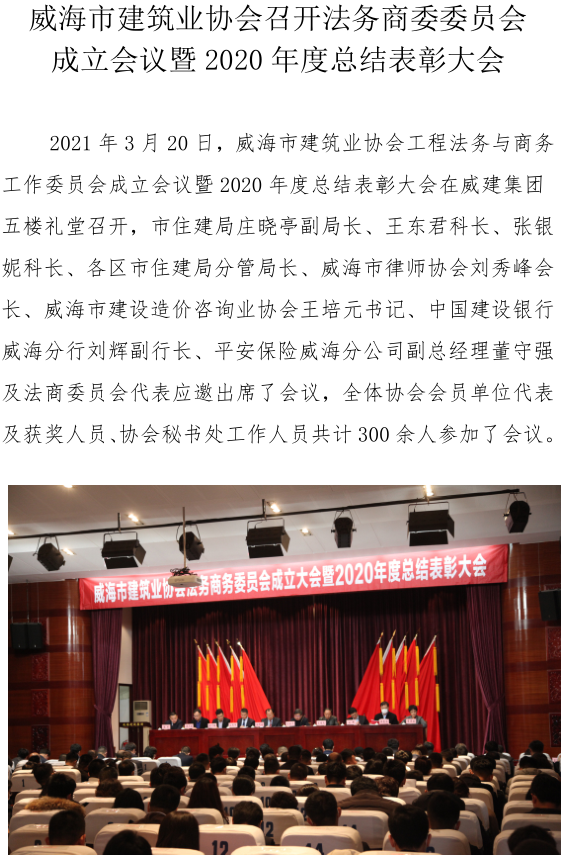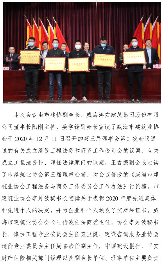 >威海市建筑業(yè)協(xié)會(huì)召開(kāi)法務(wù)商委委員會(huì) 成立會(huì)議暨2020年度總結(jié)表彰大會(huì)