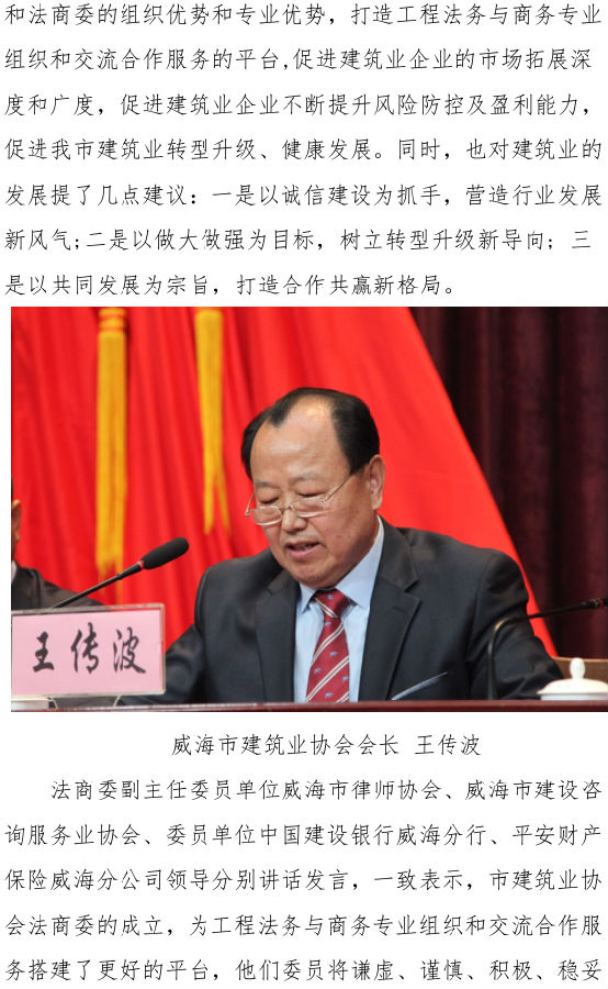 威海市建筑業(yè)協(xié)會(huì)召開(kāi)法務(wù)商委委員會(huì) 成立會(huì)議暨2020年度總結(jié)表彰大會(huì)