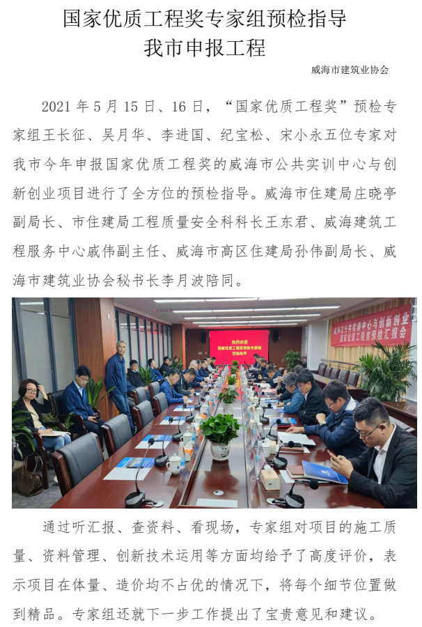 >國(guó)家優(yōu)質(zhì)工程獎(jiǎng)專(zhuān)家組預(yù)檢指導(dǎo) 我市申報(bào)工程