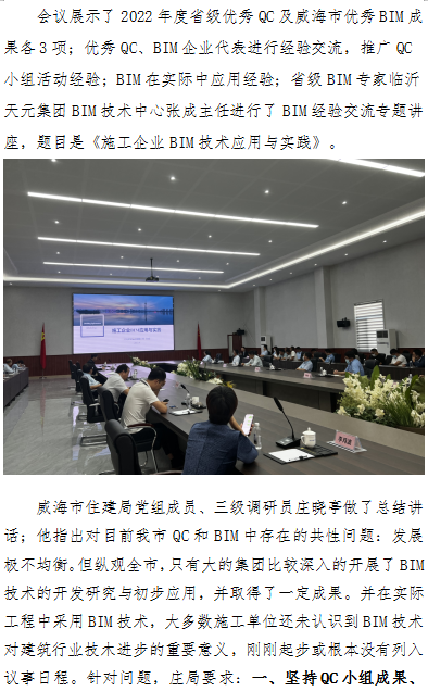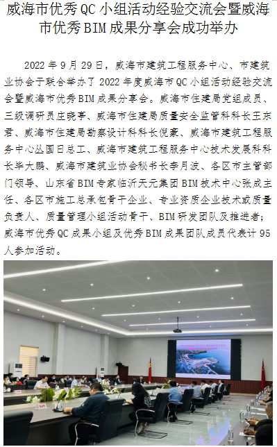 >威海市優(yōu)秀QC小組活動經(jīng)驗交流會暨威海市優(yōu)秀BIM成果分享會成功舉辦