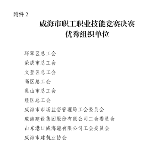 威海市建筑業(yè)協(xié)會(huì)榮獲市職工職業(yè)技能競(jìng)賽決賽優(yōu)秀組織單位